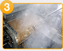 煮上がった大豆に納豆菌を噴霧する