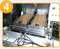 納豆菌がかかった大豆をパックに充填する