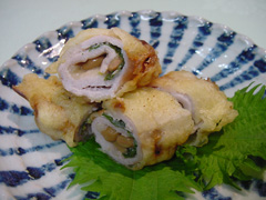 D 天ぷら衣をつけ、160℃の油でカラリと揚げる。