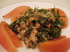 @ おかひじきは、塩を入れた たっぷりの湯でゆで、水に放す。