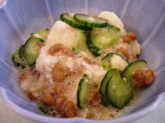 ここに長芋ときゅうりを加えてザッと和えて、小鉢に盛りつける。