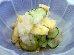 C 油揚げは、きゅうりをBの大根おろしに加えてザッと和えて