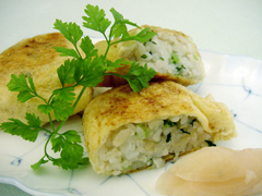 焼き上がりに、しょうゆをさっとひと塗りし軽く焼く。