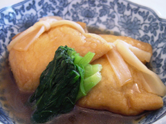 B 油揚げは、横半分に切って袋状にし、そこにラーメンを6等分に詰め