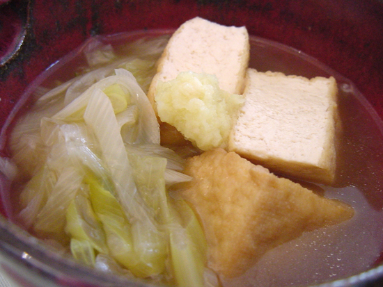 器に盛りつけ、生姜のすり卸しを添え、七味唐辛子をふる。