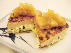 もう片方の生揚げを、チーズをのせた面を下にして重ね、四隅を