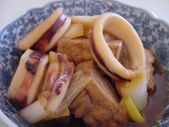 - @ いかは足を抜き、下処理をし、皮つきのまま胴を